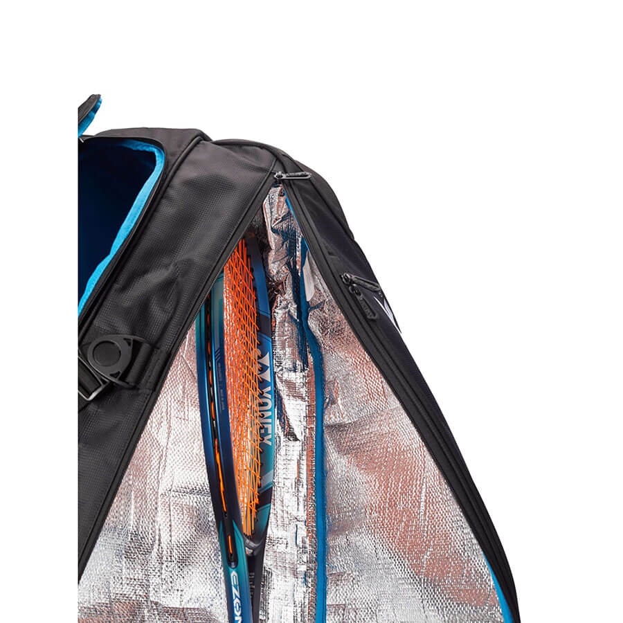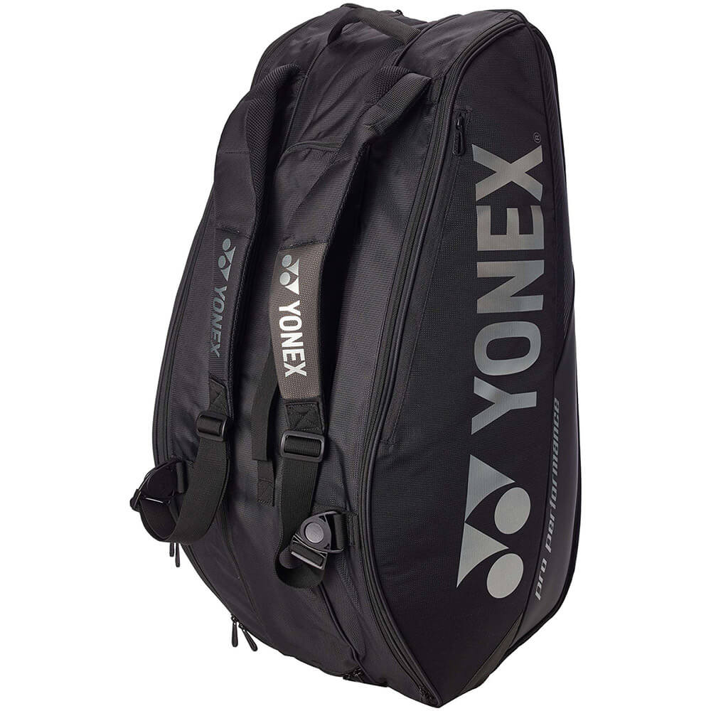 کیف تنیس یونکس پرو مشکی مدل Yonex Pro Racquet Bag 9 Pack Black در سایز 9 راکته از جدیدترین تولیدات شرکت ژاپنی یونکس میباشد. این ساک یونکس دارای 3 بخش اصلی بوده که یکی از بخشهای این ساک مجهز به عایق حرارتی کمپانی یونکس ژاپن میباشد که وسایل درون آن تحت تاثیر دمای محیط قرار نمیگیرند. جیبهای جانبی این ساک خود دارای قسمتهای کوچکتر هستند که برای نگهداری وسایل دیگر مورد استفاده قرار میگیرند. همچنین این ساک از مواد سخت (Heavy Duty Materials) ساخته شده است که دوام بسیار بالایی دارد و در صورت خالی بودن ساک، حالت اصلی حفظ میشود.