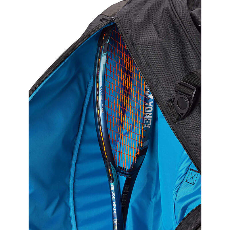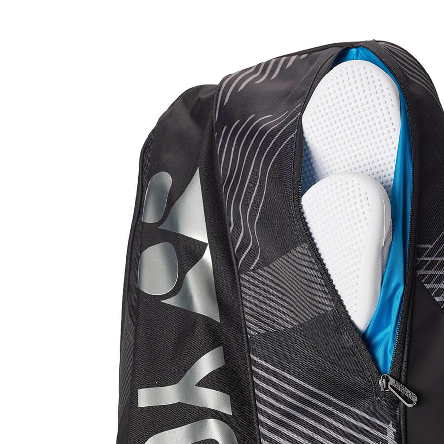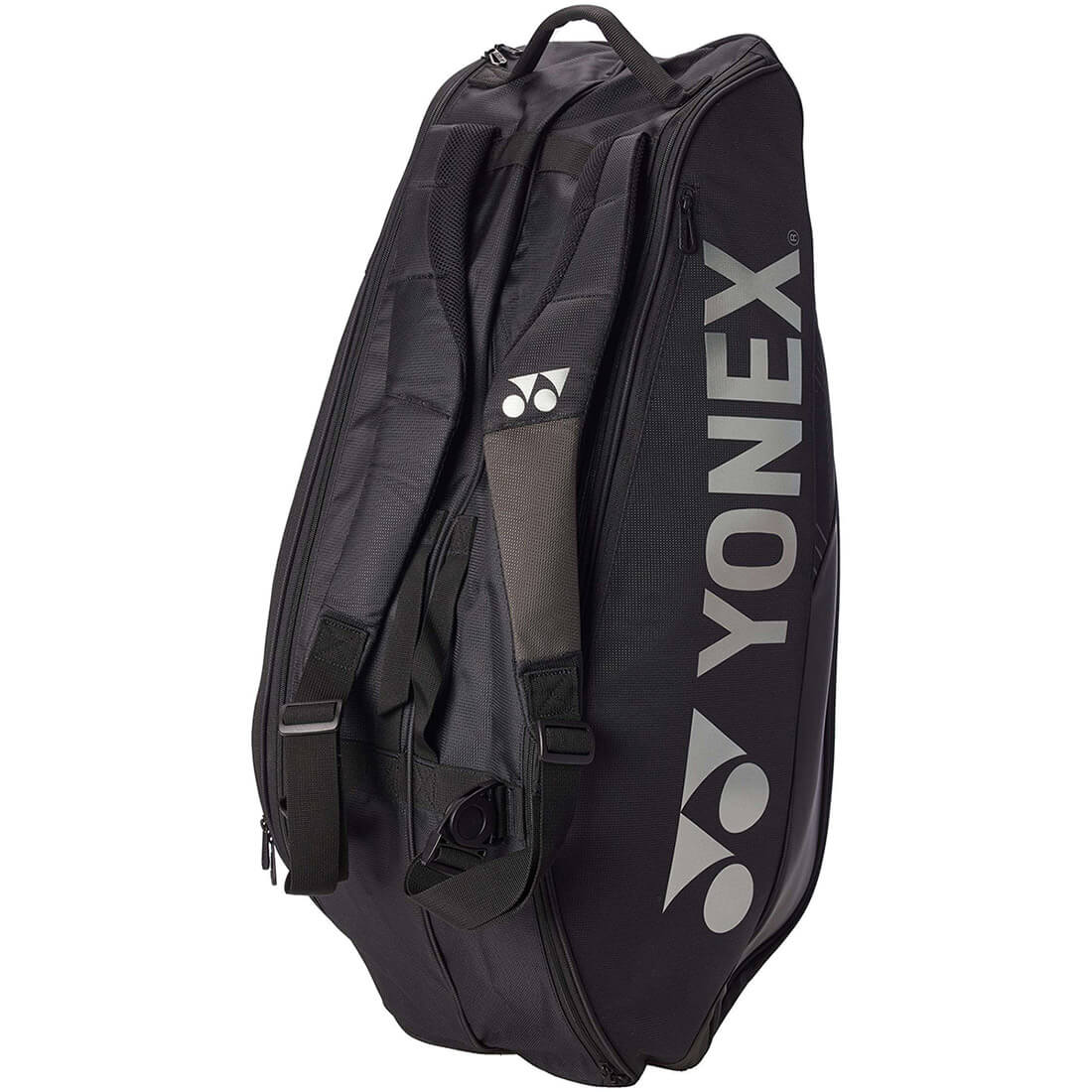 کیف تنیس یونکس پرو مشکی مدل Yonex Pro Racquet Bag 6 Pack Black در سایز 6 راکته از جدیدترین تولیدات شرکت ژاپنی یونکس میباشد. این ساک یونکس دارای 2 بخش اصلی بوده و جیبهای جانبی این ساک خود دارای قسمتهای کوچکتر هستند که برای نگهداری وسایل دیگر مورد استفاده قرار میگیرند. همچنین این ساک از مواد سخت (Heavy Duty Materials) ساخته شده است که دوام بسیار بالایی دارد و در صورت خالی بودن ساک، حالت اصلی حفظ میشود.